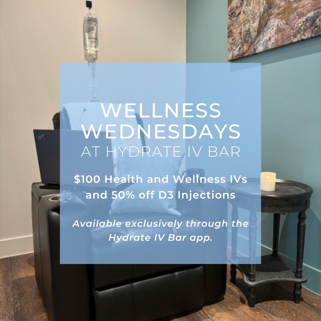 Every Wednesday is Wellness Wednesday at Hydrate IV Bar Westminster! Enjoy $100.00 Health & Wellness IVs and $20 Vitamin D3 Injections when you [...]